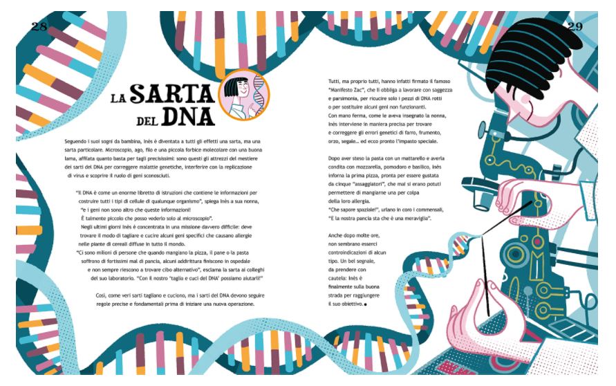 A CRISPeR Mania è piaciuto molto trovare la Sarta del DNA (ovvero la gene-editor) tra i grandi mestieri da fare da grandi, nel libro per bambini firmato da Sofia Erica Rossi, Carlo Canepa e Luca Poli (editore White Star). Curiosi di conoscere le altre carriere proposte? Ci sono l’architetto dei luoghi impossibili, la detective scova-virus, il cacciatore di nuvole, il pescatore di plastica… Raccontare CRISPR ai bambini non solo è possibile, ma è divertente. Ecco altri due esempi scelti dal panorama internazionale.