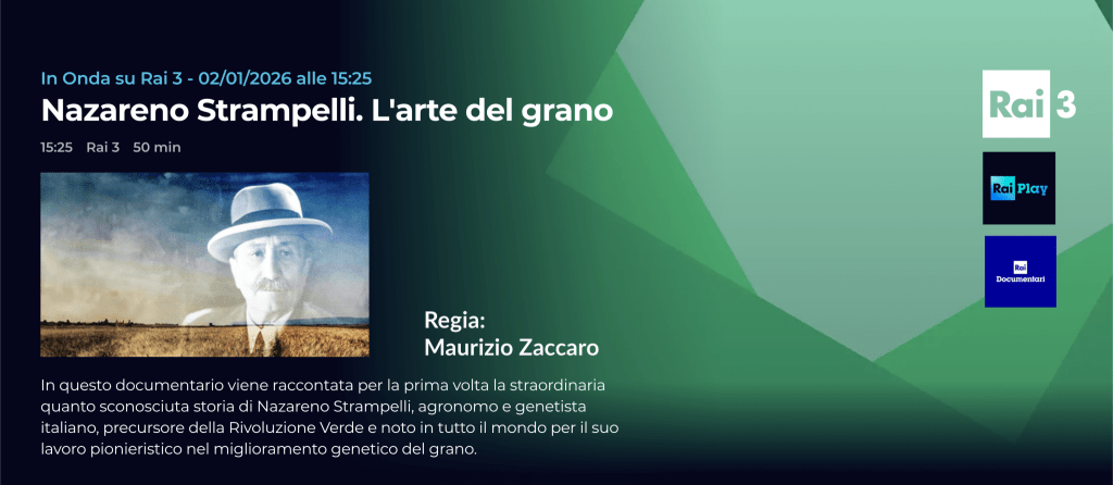 C’era una volta Strampelli Posted on gennaio 7, 2026 by Anna Meldolesi Se non conoscete la storia del “mago del grano” che agli inizi del ‘900 ha gettato le fondamenta del miglioramento genetico in Italia, su Raiplay c’è un docufilm fa per voi. Condividi: Fai clic per condividere su X (Si apre in una nuova finestra) X Fai clic per condividere su Facebook (Si apre in una nuova finestra) Facebook Mi piace Caricamento...